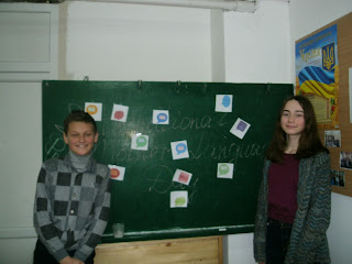 The main idea was to get acquainted with the beauty of different languages. So, the pupils of every class fulfilled various tasks. The pupils of the 5th-6th forms learnt how to say "Hello" and ''Good bye" in many languages. Children of the 7th forms played "Alphabet Games" in English and Ukrainian. Our 9th formers got some curious information about the English, German and Ukrainian languages. Also they tried to understand and find Ukrainian equvalents to the "Idioms of the world".