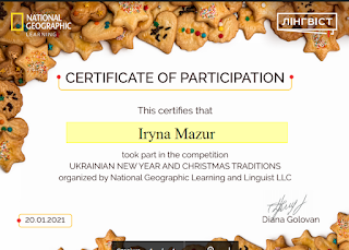 National Geographic Learning and Linguist invited to take part in the contest "Ukrainian New Year and Christmas Traditions"! Our students of the 10th form also took part in it.